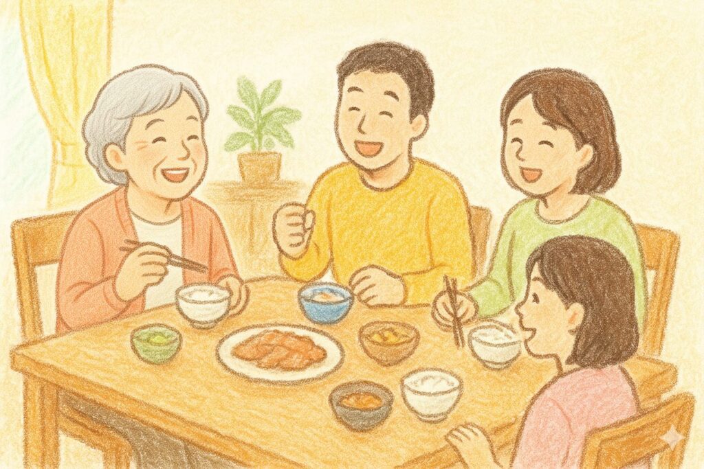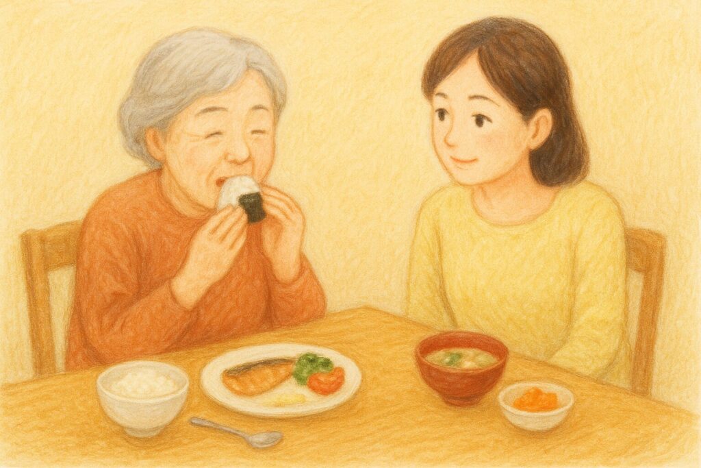 ご家族も同じように手づかみで食べると、「恥ずかしい」「わたしだけ?」という気持ちがやわらぎ、安心して食事を楽しめます。