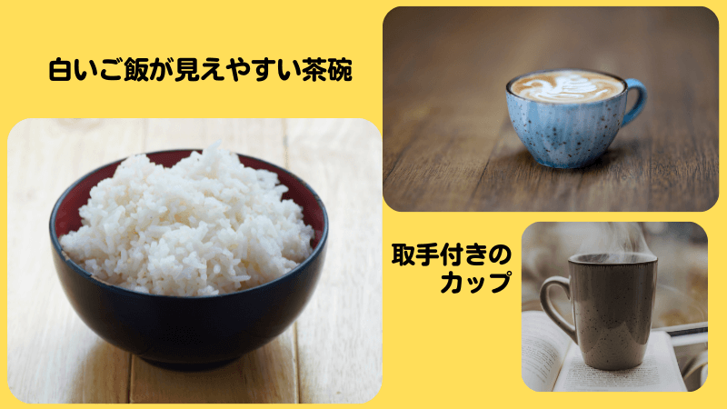 食事を始める前に、水やお茶をひと口飲んで喉を潤しましょう。