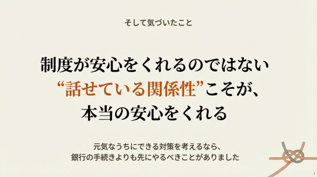 私は「元気なうちに代理人登録をしておけば安心」と思っていました。